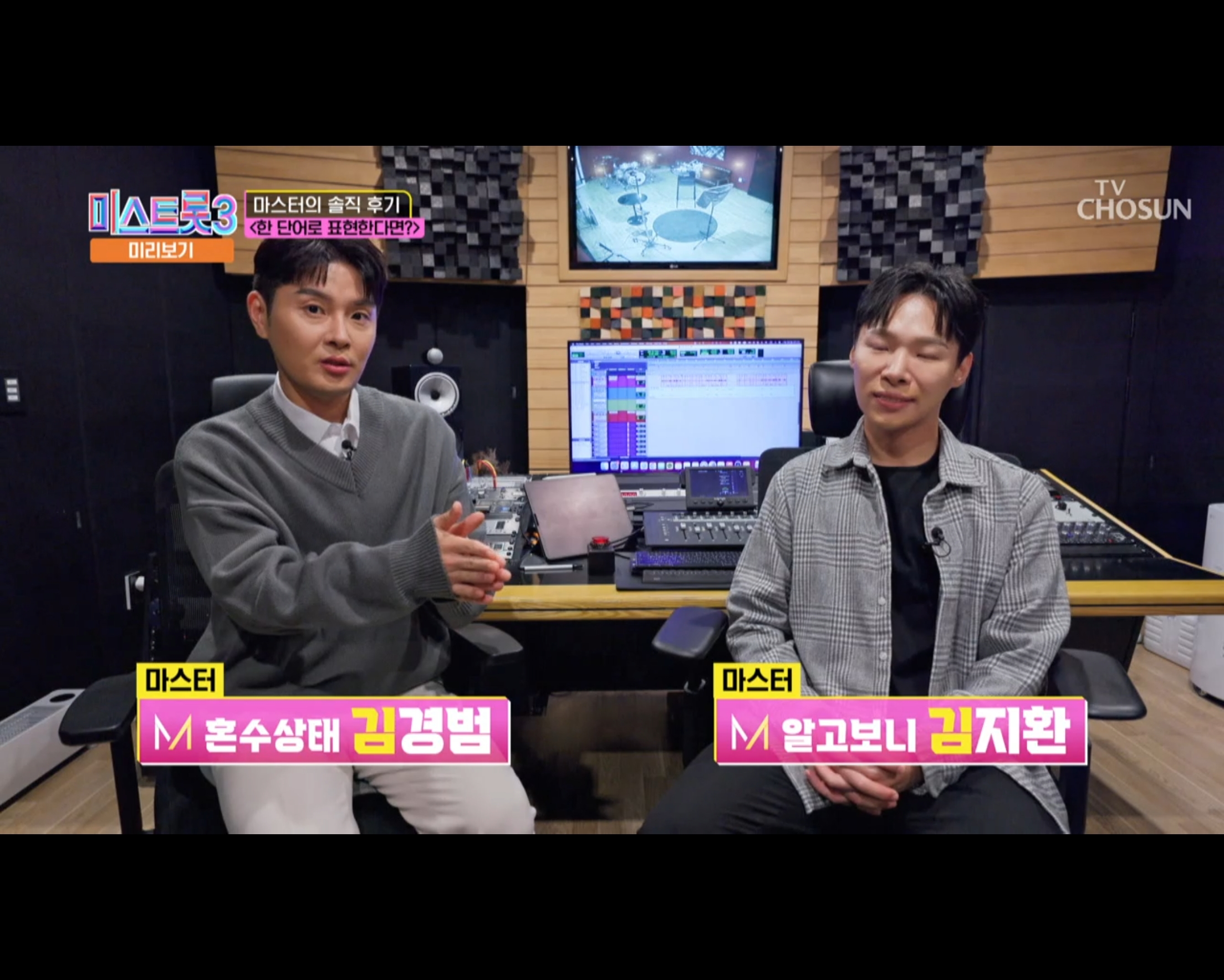 마스터는 미스,미스터트롯에 항상 있는 장윤정을 비롯해 알고 보니 혼수상태, 김연자, 진성, 붐, 장민호 그리고 새롭게 합류한 박칼린 씨도 있고 다양한 마스터들이 포진해 있습니다.